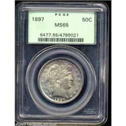 <table><tr><td><TABLE cellSpacing=0 cellPadding=0 width="100%" bgColor=#000000 border=0><TBODY> <TR><TD width="100%"><TABLE cellSpacing=1 cellPadding=3 width="100%" border=0><TBODY><TR><TD width="100%" bgColor=#79735c><FONT face=arial color=#ffffff size=3><B>Description</B> </FONT></TD></TR><TR><TD width="100%" bgColor=#ffffff><FONT face=arial size=2><B>1897 50C MS65 PCGS.</B></I> Alternating shades of rose, blue-green, and gold cover this entire coin but do not subdue the original mint luster. The cheek shows a few small contact marks, but the strike is even and strong. This is a very difficult date to find in grades better than MS64.<BR><I>From the Dr. Irving Arenberg Collection, Part I.</B></I> </FONT></TD></TR></TBODY></TABLE></TD></TR></TBODY></TABLE><BR><A name=PricesRealized></A><TABLE cellSpacing=0 cellPadding=0 width="100%" bgColor=#000000 border=0><TBODY><TR><TD width="100%"><TABLE cellSpacing=1 cellPadding=3 width="100%" border=0><TBODY><TR><TD width="100%" bgColor=#79735c><A name=PR><FONT face=arial color=#ffffff size=3><B>Previous Prices from Heritage Auctions</B> </FONT></A></TD></TR><TR><TD bgColor=#f6f6ed><TABLE cellSpacing=0 cellPadding=0 width="100%" border=1><TBODY><TR><TD align=middle width="33%"><B>Date</B></TD><TD align=middle width="33%"><B>Service</B></TD><TD align=middle width="33%"><B>Price</B></TD></TR><TR bgColor=whitesmoke><TD width="33%"><B>08/08/2001</B></TD><TD width="33%">PCGS</TD><TD width="33%">$2,645.00</TD></TR></TBODY></TABLE></TD></TR><TR><TD bgColor=#ffffff><FONT face=arial size=1 ?>PLEASE NOTE: All prices realized reflect the final hammer price PLUS the buyer's premium in auctions that charge a buyer's premium. Each item has a notation at the top of the listing indicating whether that lot included a buyer's premium. Example: A item that sells with a final hammer price of $100 and a 20% buyer's premium will display with a price realized of $120. All information listed is intended to be as accurate as possible, but errors are possible. Please use this guide carefully and inform us of any inaccuracies. </FONT></TD></TR></TBODY></TABLE></TD></TR></TBODY></TABLE><BR><TABLE cellSpacing=0 cellPadding=0 width="100%" bgColor=#000000 border=0><TBODY><TR><TD width="100%"><TABLE cellSpacing=1 cellPadding=3 width="100%" border=0><TBODY><TR><TD width="100%" bgColor=#79735c colSpan=6><FONT face=arial color=#ffffff size=3><B>Price Guide*</B> </FONT></TD></TR><TR bgColor=#f6f6ed><TD align=middle><B>Grade</B> </TD><TD align=middle><B>Coin World<BR>(Trends)</B> </TD><TD align=middle><B>Numismedia<BR>Retail</B> </TD><TD align=middle><B>Numismedia<BR>Wholesale</B> </TD><TD align=middle><B>Coin<BR>Universe</B> </TD><TD align=middle><B>Heritage<BR>Value Index</B> </TD></TR><TR bgColor=#ffffff><TD align=middle>64</TD><TD align=right>$1,250.00</TD><TD align=right>---</TD><TD align=right>$1,075.00</TD><TD align=right>$1,325.00</TD><TD align=right>$1,058.13</TD></TR><TR style="FONT-WEIGHT: bold" bgColor=#cccfdd><TD align=middle>65</TD><TD align=right>$2,800.00</TD><TD align=right>---</TD><TD align=right>$2,575.00</TD><TD align=right>$3,300.00</TD><TD align=right>$2,453.25</TD></TR><TR bgColor=#ffffff><TD align=middle>66</TD><TD align=right>---</TD><TD align=right>---</TD><TD align=right>$4,900.00</TD><TD align=right>---</TD><TD align=right>---</TD></TR><TR bgColor=#ffffff><TD colSpan=6><FONT size=1>*All information listed is intended to be as accurate as possible, but errors are possible. No item may be returned or refused based on this information which is provided as a service to our customers. You should contact each pricing source directly to determine the accuracy of this information. </FONT></TD></TR></TBODY></TABLE></TD></TR></TBODY></TABLE><BR><TABLE cellSpacing=0 cellPadding=0 width="100%" bgColor=#000000 border=0><TBODY><TR><TD width="100%"><TABLE cellSpacing=1 cellPadding=3 width="100%" border=0><TBODY><TR><TD width="100%" bgColor=#79735c><FONT face=arial color=#ffffff size=3><B>Population Guide</B> </FONT></TD></TR><TR bgColor=#ffffff><TD align=middle><!-- Begin Output of Population Grid--><TABLE cellSpacing=0 cellPadding=0 width="100%" border=0><TBODY><TR><TD vAlign=center><TABLE cellSpacing=0 width="100%" border=1 cellsadding="3"><TBODY><TR><TD vAlign=center><TABLE cellSpacing=0 cellPadding=3 width="100%" border=1><TBODY><TR><TD vAlign=center align=middle bgColor=#f0f1e8 colSpan=2 <CENTER><FONT face=Arial size=2><B>PCGS Pop </B></FONT><CENTER></CENTER></TD><TD vAlign=center align=middle bgColor=#f0f1e8 colSpan=2><CENTER><FONT face=Arial size=2><B>NGC Pop</B></CENTER></FONT></TD></TR><TR><TD vAlign=center><FONT face=Arial size=2>(65)</FONT> </TD><TD vAlign=center align=right><FONT face=Arial size=2>14</FONT> </TD><TD vAlign=center><FONT face=Arial size=2>(65)</FONT> </TD><TD vAlign=center align=right><FONT face=Arial size=2>15</FONT> </TD></TR><TR><TD vAlign=center><FONT face=Arial size=2>(>65)</FONT> </TD><TD vAlign=center align=right><FONT face=Arial size=2>3</FONT> </TD><TD vAlign=center><FONT face=Arial size=2>(>65)</FONT> </TD><TD vAlign=center align=right><FONT face=Arial size=2>3</FONT> </TD></TR></TBODY></TABLE></TD></TR></TBODY></TABLE></TD></TR></TBODY></TABLE><!-- End Output of Population Grid--></TD></TR></TBODY></TABLE></TD></TR></TBODY></TABLE><BR><TABLE cellSpacing=0 cellPadding=0 width="100%" bgColor=#000000 border=0><TBODY><TR> Important notice: Heritage usually auctions material at the rate of 200-250 lots per hour. On some occasions eBay Live bid software or the Internet may not be able to keep up with the pace of the auction. We recommend placing a realistic absentee bid now as insurance to avoid disappointment. Occasionally the auctioneer may eliminate or reject an eBay Live bid, and the auctioneer may also reopen a lot after the close of the eBay live bidding (usually because we missed an audience bid), and may reject your bid even if it shows you as the winning bidder. By bidding via eBay Live, you agree that Heritage may award the lot to