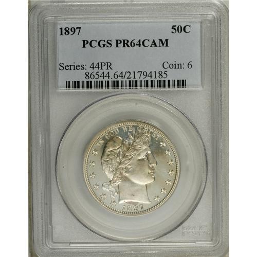 1897 50C PR64 Cameo PCGS. Sharply struck, lightly fros