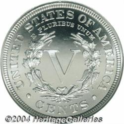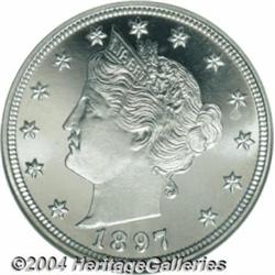 <table><tr><td><table><tr><td>1897 5C PR67 Cameo NGC. Untoned and sharply contrasted on each side with no obvious surface impairments. As an identifier, a tiny, opaque spot is seen on the obverse just below star 10. A lovely cameoed Superb Gem proof. <BR><BR><B>Important notice:</B> Heritage usually auctions material at the rate of 200-250 lots per hour. On some occasions eBay Live bid software or the Internet may not be able to keep up with the pace of the auction. We recommend placing a realistic absentee bid now as insurance to avoid disappointment. Occasionally the auctioneer may eliminate or reject an eBay Live bid, and the auctioneer may also reopen a lot after the close of the eBay live bidding (usually because we missed an audience bid), and may reject your bid even if it shows you as the winning bidder. By bidding via eBay Live, you agree that Heritage may award the lot to another bidder at its sole discretion under the circumstances described above or any other reasonable circumstances. Since eBay bids are not shown to us until we open the lot on the floor, we treat those bids just like floor bids. In most cases the floor responds before the eBay bid is presented to us, due to Internet lag time, so for consistency we have made it a policy that floor bids are always considered first over tie eBay live bids. Also please note that all Heritage lots purchased through eBay Live carry a 20% Buyer's Premium. Please make sure you read the Terms and Conditions before you bid. <BR><BR><B>IMPORTANT ANNOUNCEMENT ABOUT RESERVES:</B> Heritage now divulges all reserves on its web site 7 days before every auction. If you want to know whether the reserve on this lot has been met, and if not, what the reserve amount is, please visit this lot page on the HeritageCoin.com web site, or email: bid@HeritageGalleries.com </span></font></td></tr></table></td></tr></table>