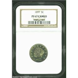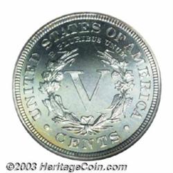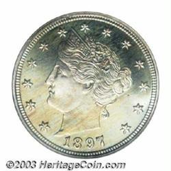 <TABLE cellSpacing=0 cellPadding=0 width="100%" bgColor=#000000 border=0><TBODY><TR><TD width="100%"><TABLE cellSpacing=1 cellPadding=3 width="100%" border=0><TBODY><TR><TD width="100%" bgColor=#79735c><FONT face=arial color=#ffffff size=3><B>Description</B> </FONT></TD></TR><TR><TD width="100%" bgColor=#ffffff><FONT face=arial size=2><B>1897 5C PR67 Cameo NGC.</B></I> The pale lime-green and lilac toning that is seen on each side is almost beautiful enough to make one forget the stark cameo contrast that underlies the faint accent of color that is present. Essentially perfect surfaces. Population: 2 in 67, 1 finer (7/03). </FONT></TD></TR></TBODY></TABLE></TD></TR></TBODY></TABLE><BR><A name=PricesRealized></A><TABLE cellSpacing=0 cellPadding=0 width="100%" bgColor=#000000 border=0><TBODY><TR><TD width="100%"><TABLE cellSpacing=1 cellPadding=3 width="100%" border=0><TBODY><TR><TD width="100%" bgColor=#79735c><A name=PR><FONT face=arial color=#ffffff size=3><B>Previous Prices from Heritage Auctions</B> </FONT></A></TD></TR><TR><TD bgColor=#f6f6ed><TABLE cellSpacing=0 cellPadding=0 width="100%" border=1><TBODY><TR><TD align=middle width="33%"><B>Date</B></TD><TD align=middle width="33%"><B>Service</B></TD><TD align=middle width="33%"><B>Price</B></TD></TR><TR bgColor=whitesmoke><TD width="33%"><B>01/11/2003</B></TD><TD width="33%">PCGS</TD><TD width="33%">$4,887.50</TD></TR></TBODY></TABLE></TD></TR><TR><TD bgColor=#ffffff><FONT face=arial size=1 ?>PLEASE NOTE: All prices realized reflect the final hammer price PLUS the buyer's premium in auctions that charge a buyer's premium. Each item has a notation at the top of the listing indicating whether that lot included a buyer's premium. Example: A item that sells with a final hammer price of $100 and a 20% buyer's premium will display with a price realized of $120. All information listed is intended to be as accurate as possible, but errors are possible. Please use this guide carefully and inform us of any inaccuracies. </FONT></TD></TR></TBODY></TABLE></TD></TR></TBODY></TABLE><BR><TABLE cellSpacing=0 cellPadding=0 width="100%" bgColor=#000000 border=0><TBODY><TR><TD width="100%"><TABLE cellSpacing=1 cellPadding=3 width="100%" border=0><TBODY><TR><TD width="100%" bgColor=#79735c colSpan=6><FONT face=arial color=#ffffff size=3><B>Price Guide*</B> </FONT></TD></TR><TR bgColor=#f6f6ed><TD align=middle><B>Grade</B> </TD><TD align=middle><B>Coin World<BR>(Trends)</B> </TD><TD align=middle><B>Numismedia<BR>Retail</B> </TD><TD align=middle><B>Numismedia<BR>Wholesale</B> </TD><TD align=middle><B>Coin<BR>Universe</B> </TD><TD align=middle><B>Heritage<BR>Value Index</B> </TD></TR><TR bgColor=#ffffff><TD align=middle>66</TD><TD align=right>---</TD><TD align=right>---</TD><TD align=right>---</TD><TD align=right>---</TD><TD align=right>---</TD></TR><TR style="FONT-WEIGHT: bold" bgColor=#cccfdd><TD align=middle>67</TD><TD align=right>---</TD><TD align=right>---</TD><TD align=right>---</TD><TD align=right>---</TD><TD align=right>---</TD></TR><TR bgColor=#ffffff><TD align=middle>68</TD><TD align=right>---</TD><TD align=right>---</TD><TD align=right>---</TD><TD align=right>---</TD><TD align=right>---</TD></TR><TR bgColor=#ffffff><TD colSpan=6><FONT size=1>*All information listed is intended to be as accurate as possible, but errors are possible. No item may be returned or refused based on this information which is provided as a service to our customers. You should contact each pricing source directly to determine the accuracy of this information. </FONT></TD></TR></TBODY></TABLE></TD></TR></TBODY></TABLE><BR><TABLE cellSpacing=0 cellPadding=0 width="100%" bgColor=#000000 border=0><TBODY><TR><TD width="100%"><TABLE cellSpacing=1 cellPadding=3 width="100%" border=0><TBODY><TR><TD width="100%" bgColor=#79735c><FONT face=arial color=#ffffff size=3><B>Population Guide</B> </FONT></TD></TR><TR bgColor=#ffffff><TD align=middle><!-- Begin Output of Population Grid--><TABLE cellSpacing=0 cellPadding=0 width="100%" border=0><TBODY><TR><TD vAlign=center><TABLE cellSpacing=0 width="100%" border=1 cellsadding="3"><TBODY><TR><TD vAlign=center><TABLE cellSpacing=0 cellPadding=3 width="100%" border=1><TBODY><TR><TD vAlign=center align=middle bgColor=#f0f1e8 colSpan=2 <CENTER><FONT face=Arial size=2><B>PCGS Pop </B></FONT><CENTER></CENTER></TD><TD vAlign=center align=middle bgColor=#f0f1e8 colSpan=2><CENTER><FONT face=Arial size=2><B>NGC Pop</B></CENTER></FONT></TD></TR><TR><TD vAlign=center><FONT face=Arial size=2>(67)</FONT> </TD><TD vAlign=center align=right><FONT face=Arial size=2>1</FONT> </TD><TD vAlign=center><FONT face=Arial size=2>(67)</FONT> </TD><TD vAlign=center align=right><FONT face=Arial size=2>2</FONT> </TD></TR><TR><TD vAlign=center><FONT face=Arial size=2>(>67)</FONT> </TD><TD vAlign=center align=right><FONT face=Arial size=2>0</FONT> </TD><TD vAlign=center><FONT face=Arial size=2>(>67)</FONT> </TD><TD vAlign=center align=right><FONT face=Arial size=2>1</FONT> </TD></TR></TBODY></TABLE></TD></TR></TBODY></TABLE></TD></TR></TBODY></TABLE><!-- End Output of Population Grid--> Important notice: Heritage usually auctions material at the rate of 200-250 lots per hour. On some occasions eBay Live bid software or the Internet may not be able to keep up with the pace of the auction. We recommend placing a realistic absentee bid now as insurance to avoid disappointment. Occasionally the auctioneer may eliminate or reject an eBay Live bid, and the auctioneer may also reopen a lot after the close of the eBay live bidding (usually because we missed an audience bid), and may reject your bid even if it shows you as the winning bidder. By bidding via eBay Live, you agree that Heritage may award the lot to another bidder at its sole discretion under the circumstances described above or any other reasonable circumstances. Also please note that all Heritage lots purchased through eBay Live carry a 20% Buyer's Premium. Please make sure you read the Terms and Conditions before