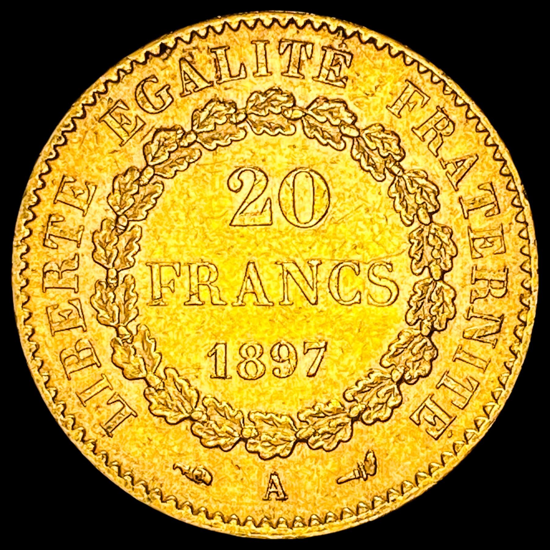 1897-A Gold 20 Francs Angel France CLOSELY UNCIRCULATED