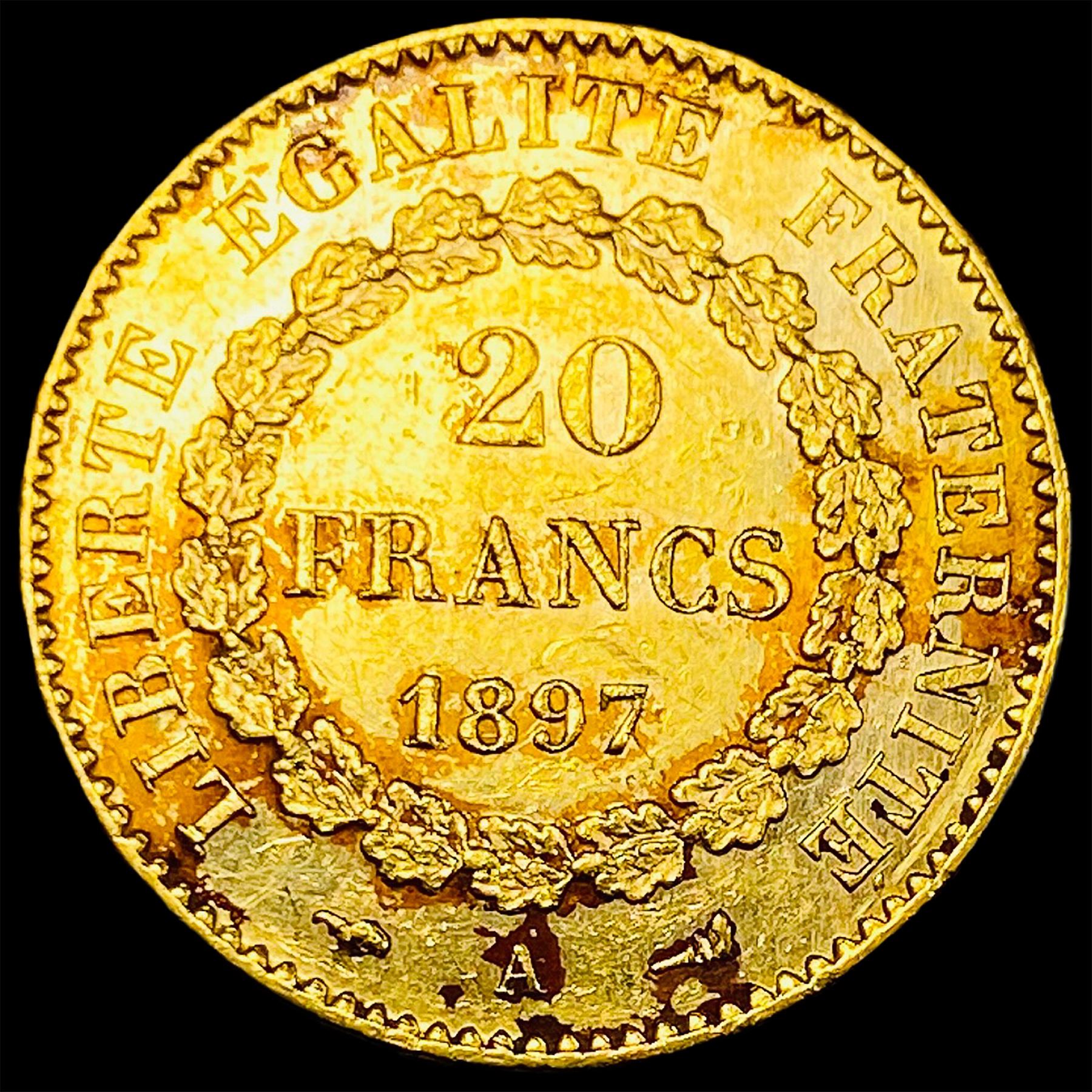1897-A Gold 20 Francs France Angel CLOSELY UNCIRCULATED