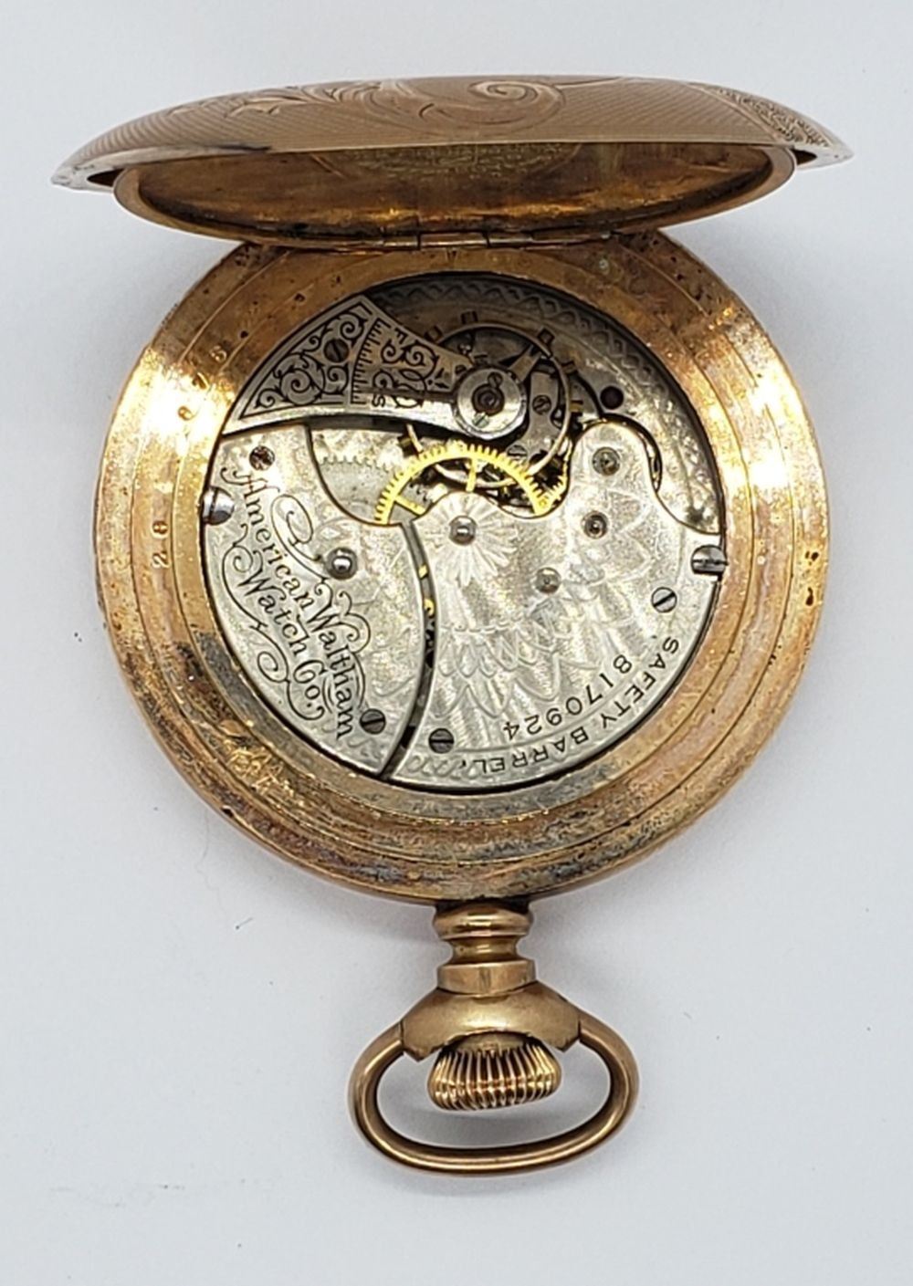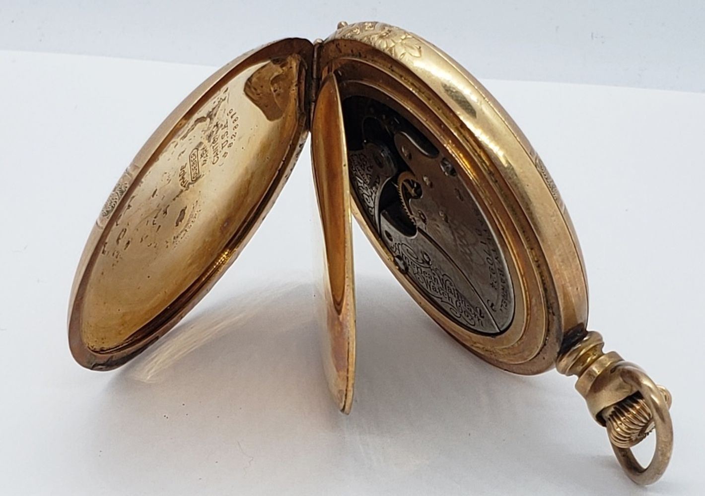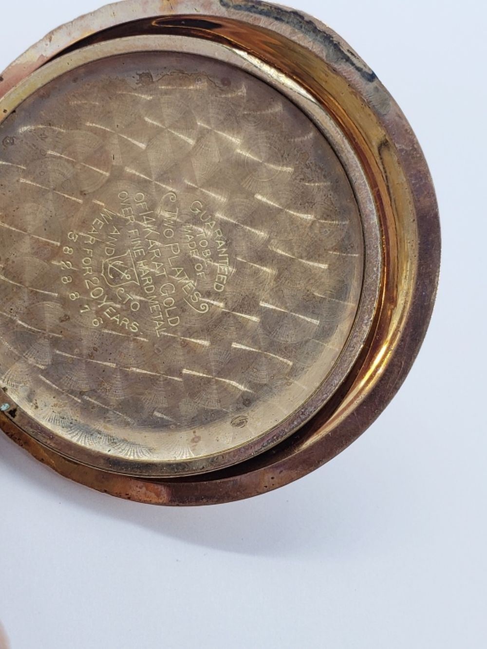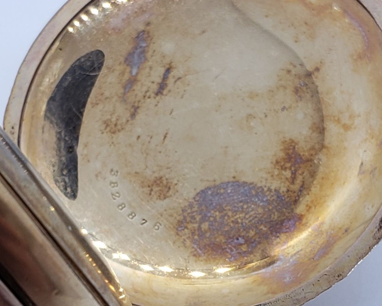 HUNTING CASE , SIZE 6, 7j, SERIAL #8170924, NOT RUNNING, WOUND TIGHT, CASE is 14k GOLD OVER HARD METAL, MINUTE HAND HAS SOME CORROSION,