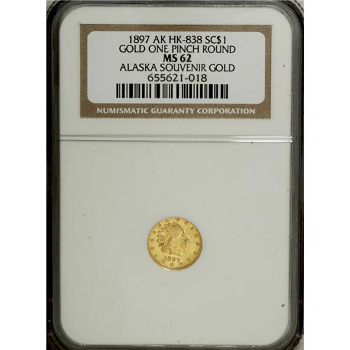 1897 Alaska Gold One Pinch MS62 NGC. AK HK-838, "Very r