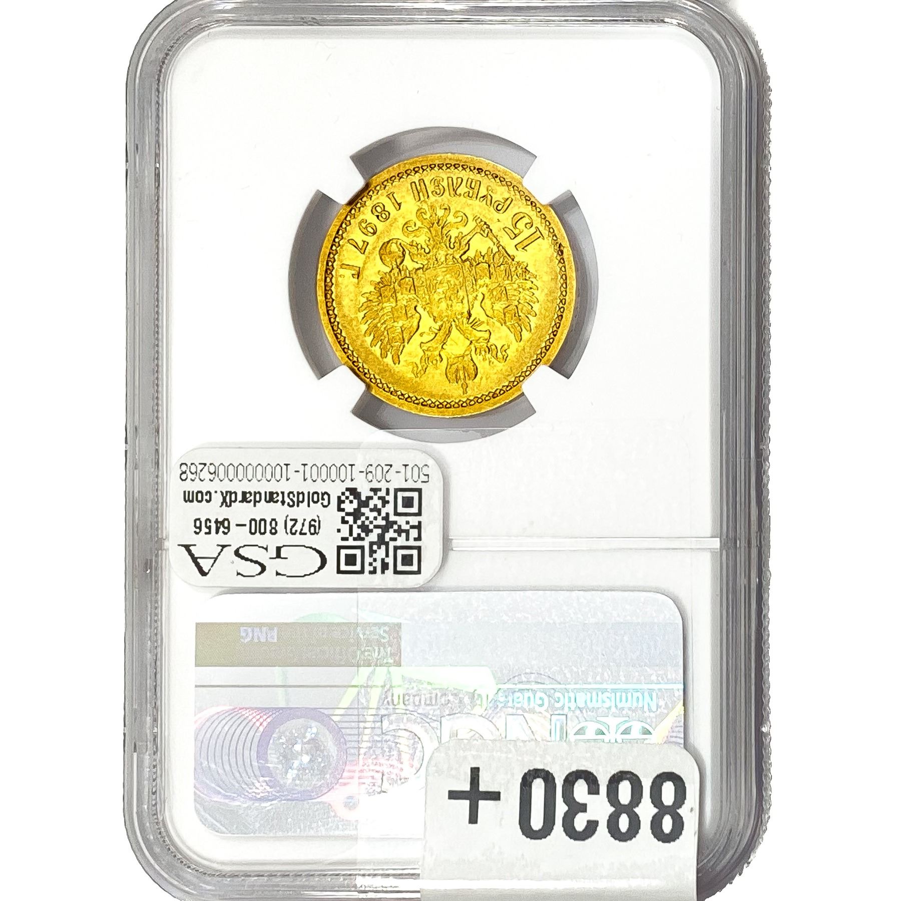 1897 At Russia 15R Narrow Rim NGC AU55