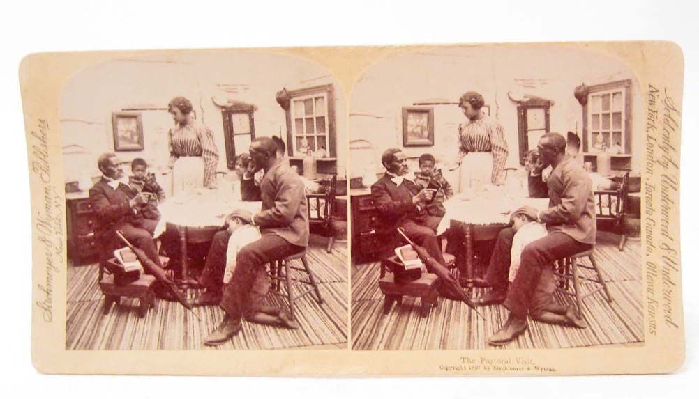 1897 BLACK AMERICANA STEREOVIEW CARD - PASTORAL VISIT