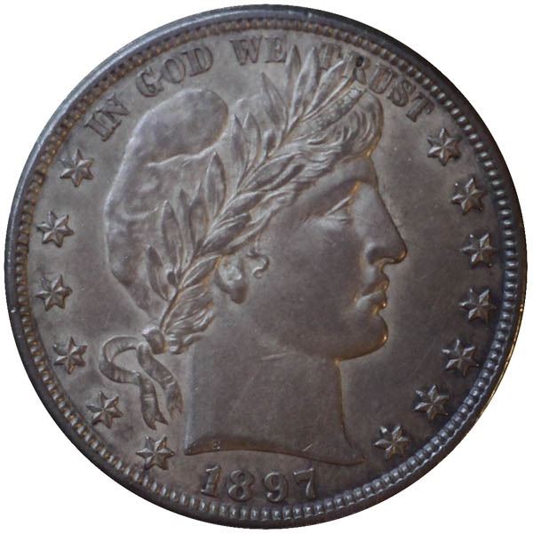 1897 Barber Half Dollar. About Uncirculated.