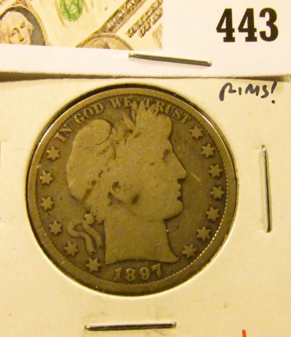 1897 Barber Half Dollar, G6, strong rims, value $20