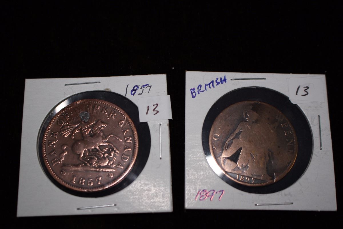 1897 British Large Penny & Bank of Upper Canada One Penny Token- Each