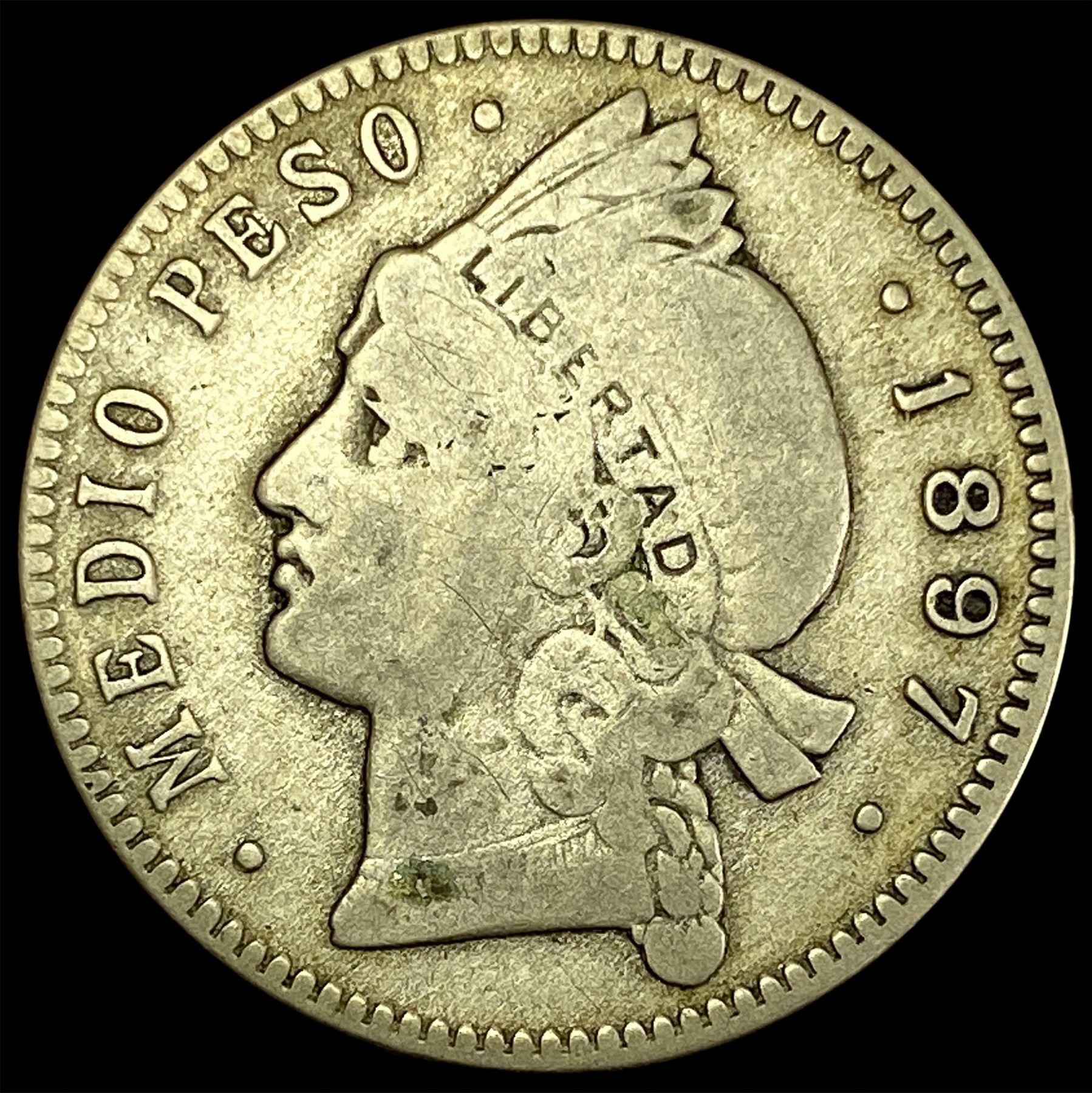 1897 Dominican Republic Silver 1/2 Peso ABOUT UNCIRCULATED