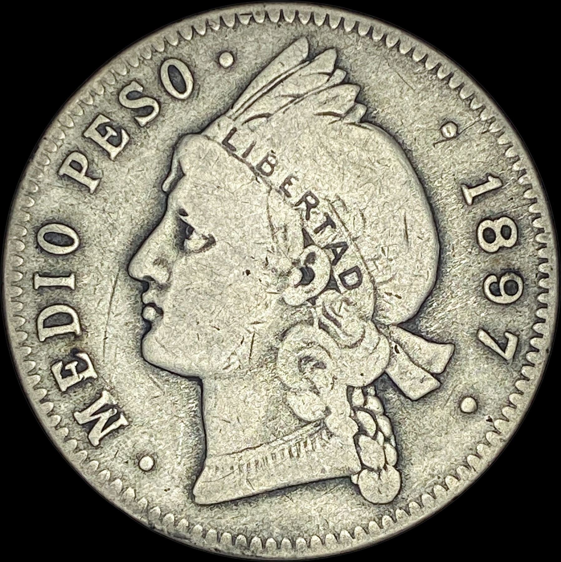 1897 Dominican Republic Silver 1/2 Peso ABOUT UNCIRCULATED