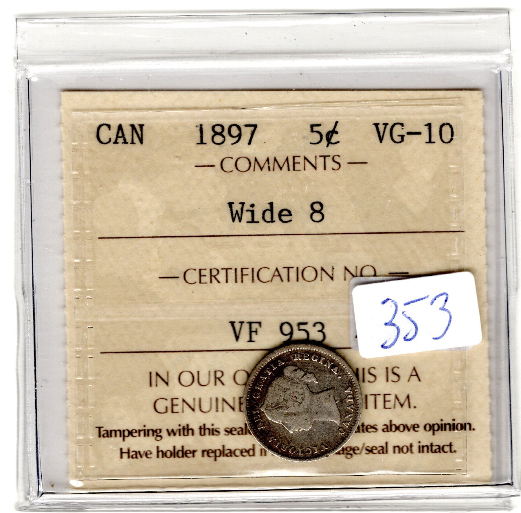 1897 FIVE CENTS WIDE 8 CERTIFIED