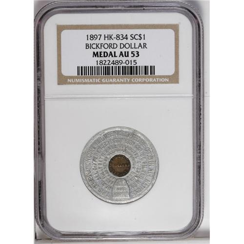 1897 HK-824 Bickfor Dollar, AU53, NGC. These were issue