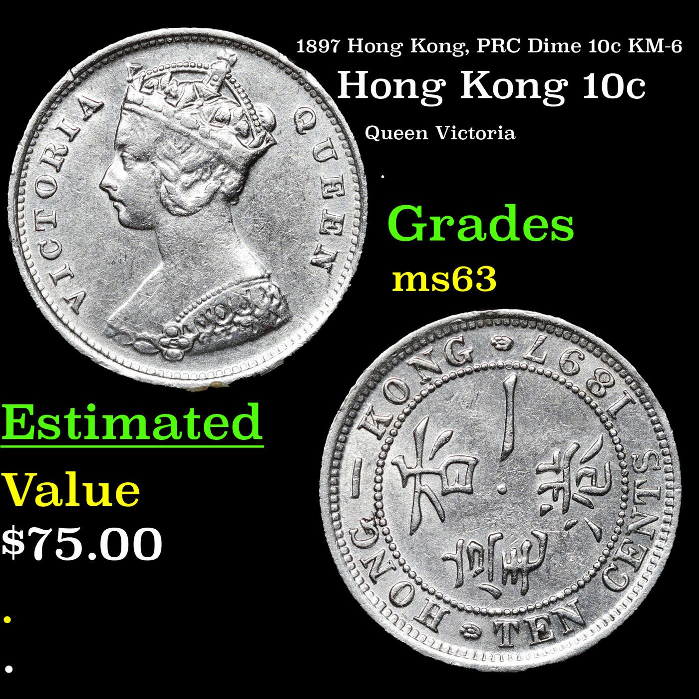 1897 Hong Kong, PRC Dime 10c KM-6 Grades Select Unc