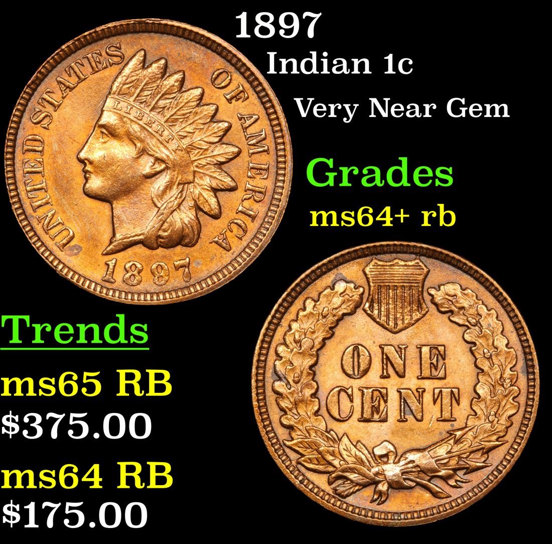 1897 . Very Near Gem Indian Cent 1c Grades Choice+ Unc RB.