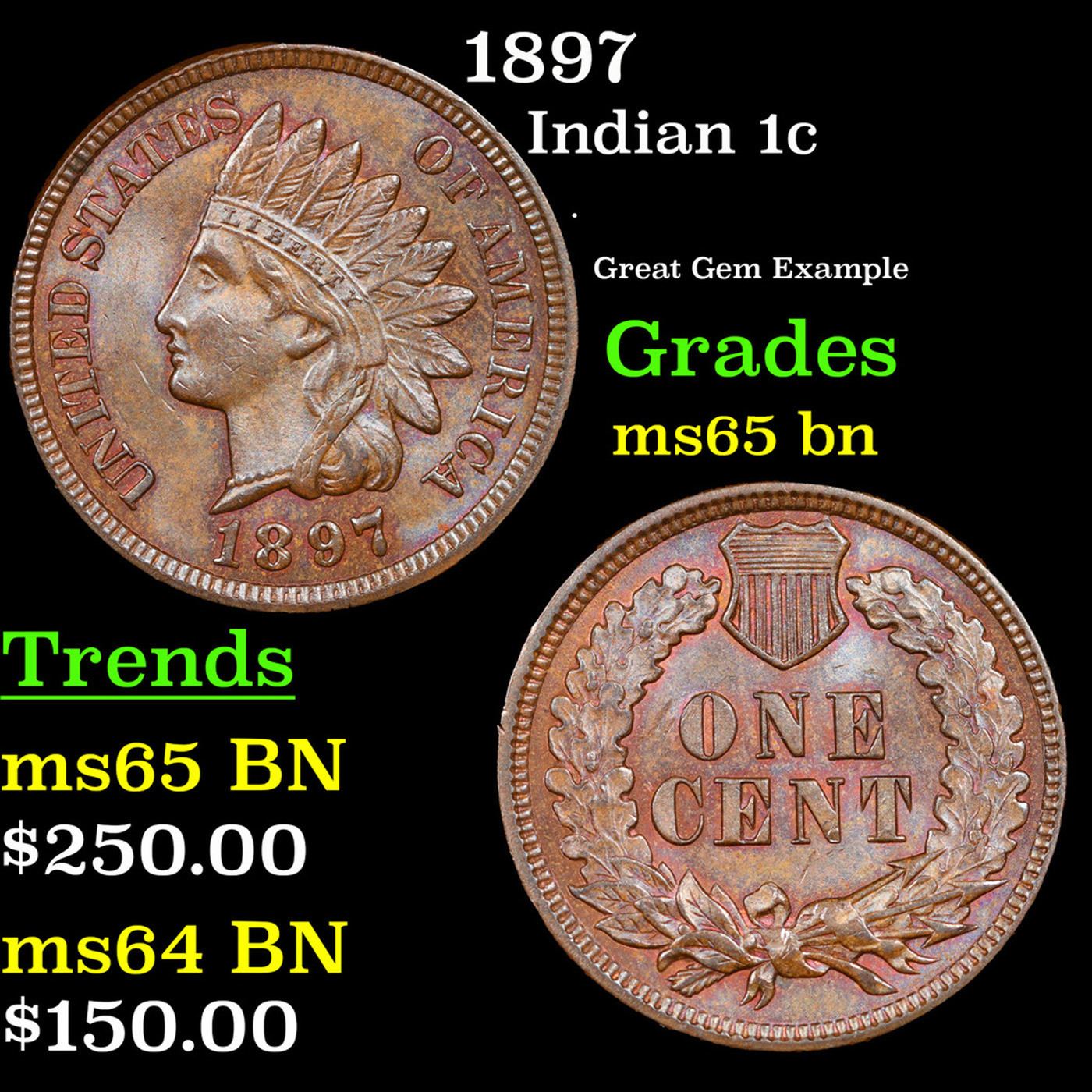 1897 Indian Cent 1c Grades GEM Unc BN.