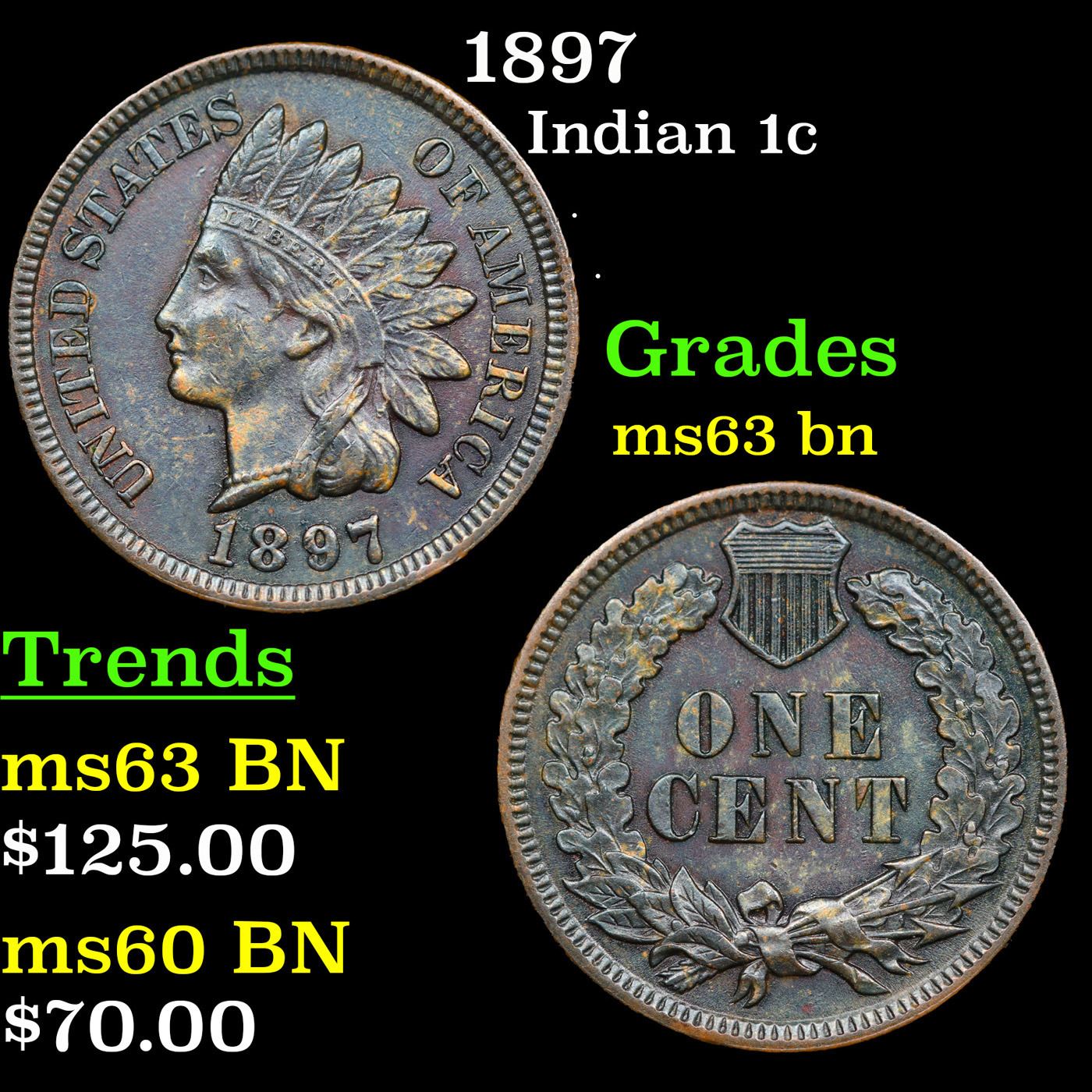1897 Indian Cent 1c Grades Select Unc BN.