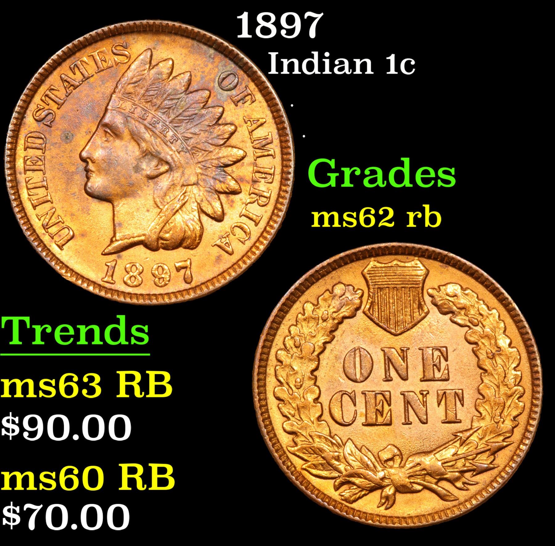 1897 . . Indian Cent 1c Grades Select Unc RB.