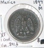 1897 MEXICO 1 CENT *RARE EARLY EXTRA FINE GRADE!! COIN CAME OUT OF SAFE!! ***Coin, Currency & All Items Listed in this auction - Grades, Conditions and Values are not Safe Deposit Coins LLC Responsibilty. Grades, Condition and Values are determined by Consigner(s) & Buyers ONLY