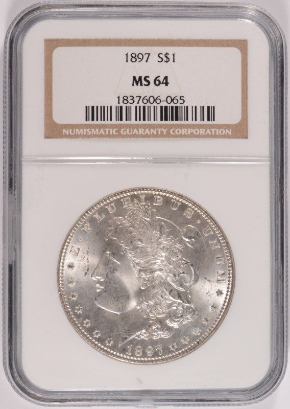 1897 MORGAN SILVER DOLLAR, NGC MS-64 WHITE!