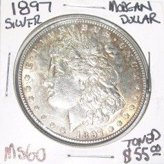 1897 MORGAN SILVER DOLLAR RED BOOK VALUE IS $60+ *RARE MS-60 TONED HIGH GRADE*!! ***Coin, Currency & All Items Listed in this auction - Grades, Conditions and Values are not Safe Deposit Coins LLC Responsibilty. Grades, Condition and Values are determined by Consigner(s) & Buyers ONLY