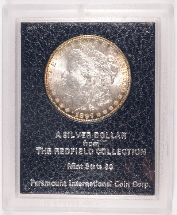 1897 MORGAN SILVER DOLLAR, REDFIELD-PARAMOUNT BLACK BOX MS-60 RARE!
