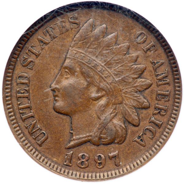 1897 MPD FS-011.5 Snow-1. NGC graded AU-58 Brown.