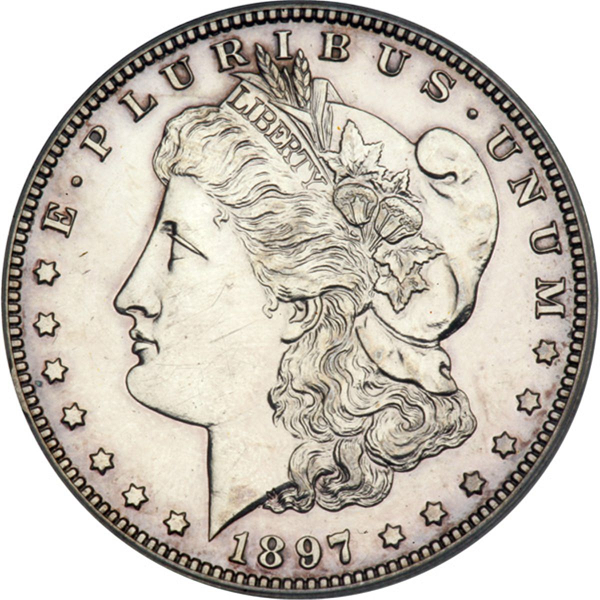 1897 Morgan Dollar. PCGS graded Proof 60. Some tone rests within the devices. Light hairlines. Only 731 struck (PCGS # 7332) .