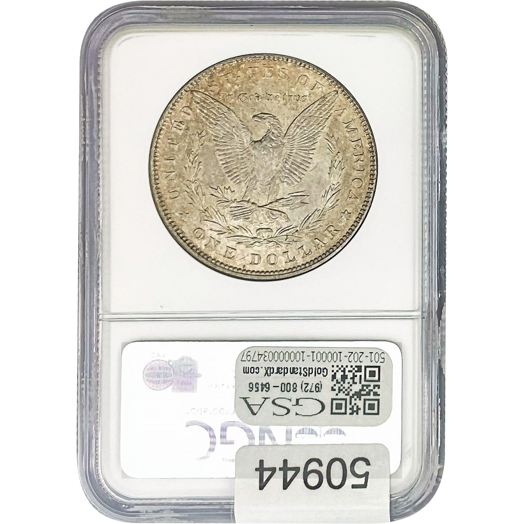 e. Coins sold referencing a third-party grading service are sold “AS IS” without any express or implied warranty, except for a guarantee by GSA that they are genuine. Removal or alteration of the holder, voids all of Bidder’s claims concerning that Product. Certain warranties may be available from the grading services and Bidders are referred to them for further details: Numismatic Guaranty Corporation (NGC), PO Box 4776, Sarasota, FL 34230, www.ngccoin.com/services/writtenguarantee.asp; Professional Coin Grading Services (PCGS), PO Box 9458, Newport Beach, CA 92658, www.pcgs.com/guarantee.html; ANACS, 6555 S. Kenton St., Ste. 303, Englewood, CO 80111; and Independent Coin Grading Co. (ICG), 7901 East Bellview, Ave., Suite 50, Englewood, CO 80111.