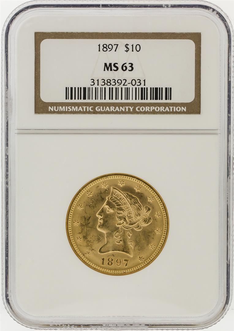 One 1897 NGC MS63 $10 Liberty Head Eagle Gold Coin. NGC Certified.