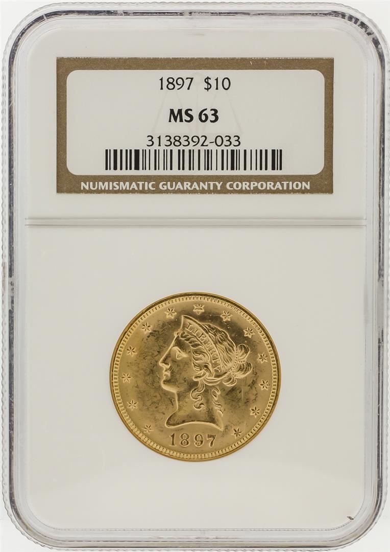 One 1897 NGC MS63 $10 Liberty Head Eagle Gold Coin. NGC Certified.