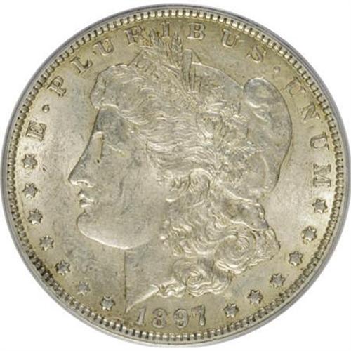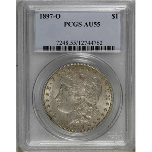 <B>1897-O $1 AU55 PCGS.</B></I> PCGS Population (592/2053). NGC Census: (590/2585). Mintage: 4,004,000. Numismedia Wsl. Price for NGC/PCGS coin in AU55: $150. (#7248)<BR><BR><B>Coin Engraver:</B> George T. Morgan<BR><BR><b>Shipping:</b> Coins & Currency (<a target="_blank" href="http://www.heritageauctions.com/common/shipping.php">view shipping information</a>)
