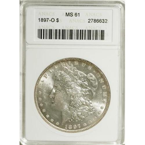 <B>1897-O $1 MS61 ANACS.</B></I> NGC Census: (399/741). PCGS Population (276/723). Mintage: 4,004,000. Numismedia Wsl. Price for NGC/PCGS coin in MS61: $1,025. (#7248)<BR><BR><B>Coin Engraver:</B> George T. Morgan<BR><BR><b>Shipping:</b> Coins & Currency (<a target="_blank" href="http://www.heritageauctions.com/common/shipping.php">view shipping information</a>)