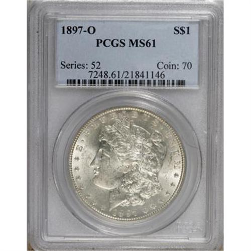 <B>1897-O $1 MS61 PCGS.</B></I> PCGS Population (274/673). NGC Census: (396/741). Mintage: 4,004,000. Numismedia Wsl. Price for NGC/PCGS coin in MS61: $1,025. (#7248)<BR><BR><B>Coin Engraver:</B> George T. Morgan<BR><BR><b>Shipping:</b> Coins & Currency (<a target="_blank" href="http://www.heritageauctions.com/common/shipping.php">view shipping information</a>)