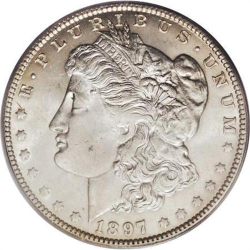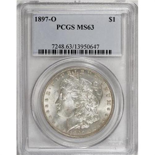 <B>1897-O $1 MS63 PCGS.</B></I> This scarce date dollar is impressively unabraded for its grade, and the luster is also exemplary. In 1993, Q. David Bowers wrote, "most 1897-O dollars are poorly struck with unsatisfactory lustre." On the present piece, the centers are softly impressed, but the technical quality of the coin is undeniable.<BR><BR><B>Coin Engraver:</B> George T. Morgan<BR><BR><b>Shipping:</b> Coins & Currency (<a target="_blank" href="http://www.heritageauctions.com/common/shipping.php">view shipping information</a>)
