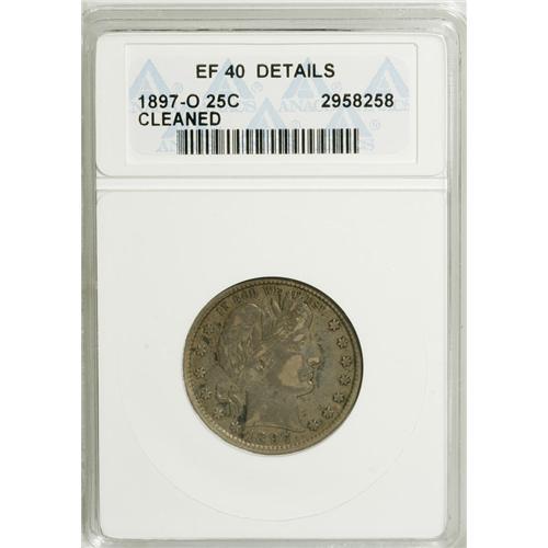 <B>1897-O 25C --Cleaned--ANACS. XF40 Details.</B></I> NGC Census: (1/50). PCGS Population (0/57). Mintage: 1,414,800. Numismedia Wsl. Price: $275. (#5617)<BR><BR><b>Shipping:</b> Coins & Currency (<a target="_blank" href="http://www.heritageauctions.com/common/shipping.php">view shipping information</a>)
