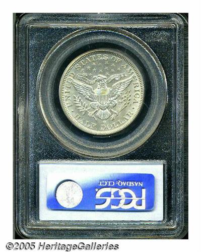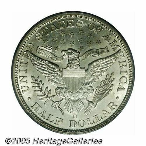 <B>1897-O<50C> MS64 PCGS.</B></I> This is a sharply struck and fully brilliant near-Gem with subliminal champagne toning. The surfaces have a few tiny abrasions, but the overall eye appeal out-distances many Gem quality Barber Half Dollars. Not only is this a lovely example for the grade, but it is an elusive date as well. Few finer examples have been certified by PCGS. Population: 15 in 64, 14 finer (5/05).