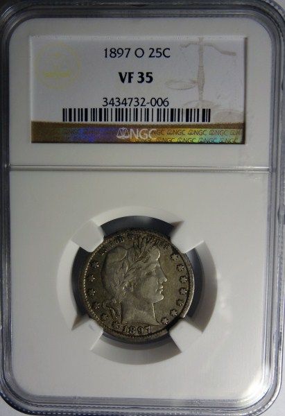 1897-O BARBER QUARTER NGC VF35 ABOUT XF