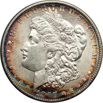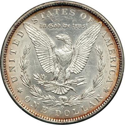 1897-O $1 CCC graded MS63. Our grade is AU55. Light golden toning around the edges.