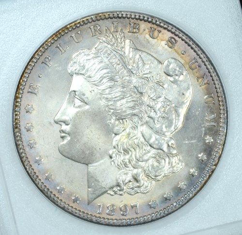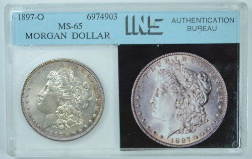 1897-O MORGAN DOLLAR INS GRADED MS65, BEAUTIFUL, RARE, ORIGINAL 100% STRIKE