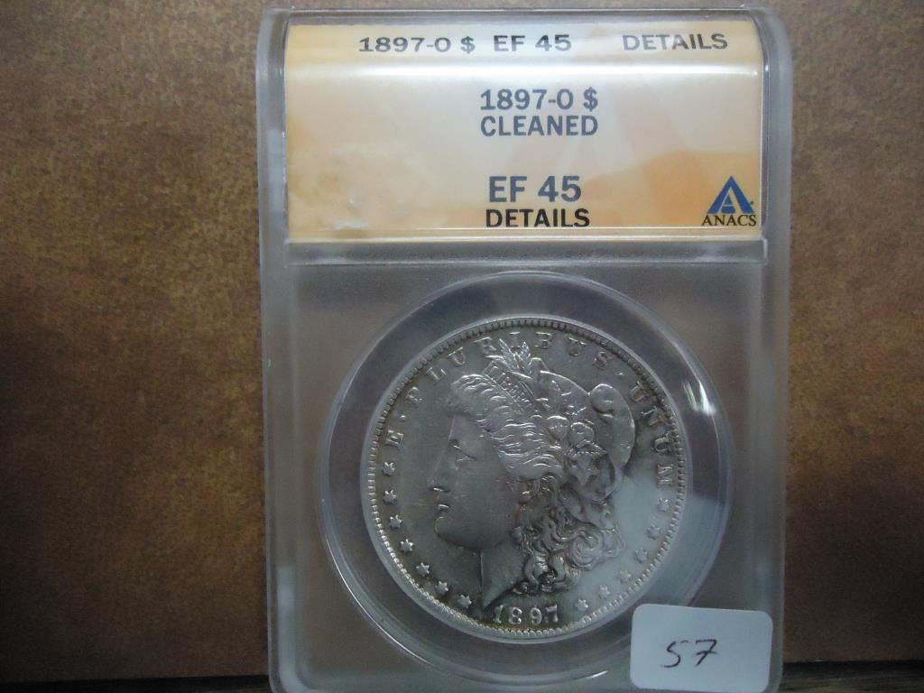 1897-O MORGAN SILVER DOLLAR ANACS (EF 45 DETAILS)