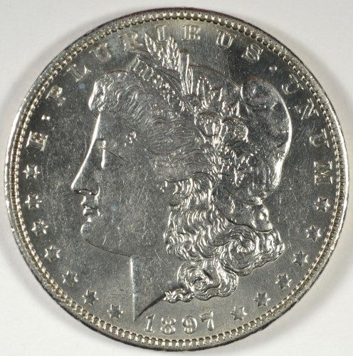 1897-O MORGAN SILVER DOLLAR, MS-64 BLAST WHITE, RARE IN HIGH GRADE