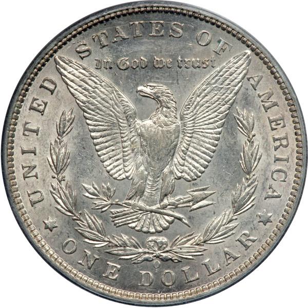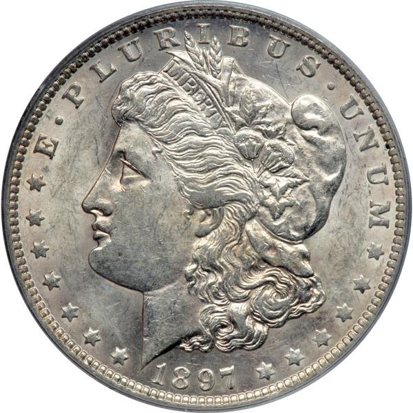 1897-O. PCGS graded AU-55. Frosty and lightly toned (PCGS # 7248) .
