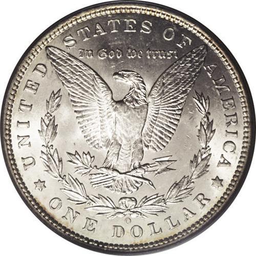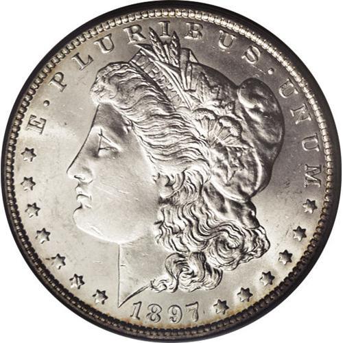 <B>1897-O<img border='0' src='http://www.heritagecoins.com/images/star.gif' width=10 height=10>$1> MS63 PCGS.</B></I> A particularly attractive and well defined '97-O, with a monochromatic satiny brilliance and a subtle hint of golden-orange toning at the margins. Boldly struck, lustrous, and carefully preserved, with just a few grade-defining marks on the obverse.