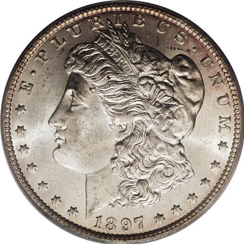 <B>1897-O S$1 MS64 PCGS.</B></I> The 1897-O is one of those Morgan dollar issues that gets no respect. Many are found with insipid luster, weak strikes, or a combination of those, and Gem examples are nearly unheard of. The present near-Gem features radiant cartwheel luster, superb surface appearance, good coloration in the form of a light silver-gold cast with slight tinges of lilac, and a good if not full strike. Only light abrasions prevent the Gem grade, but the eye appeal is extremely high. PCGS has certified only 28 examples in MS64, with 13 pieces finer (11/06).<BR><BR><b>Shipping:</b> Coin/Currency (<a target="_blank" href="http://www.heritageauctions.com/common/shipping.php">view shipping information</a>)