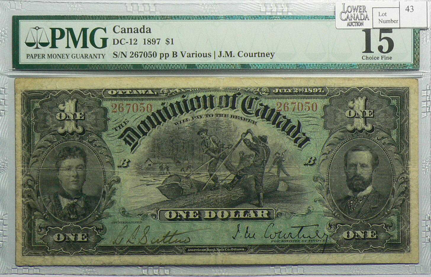 1897 One Dollar, DC-12, PMG F-15, Courtney, Letter B, serial 267050.