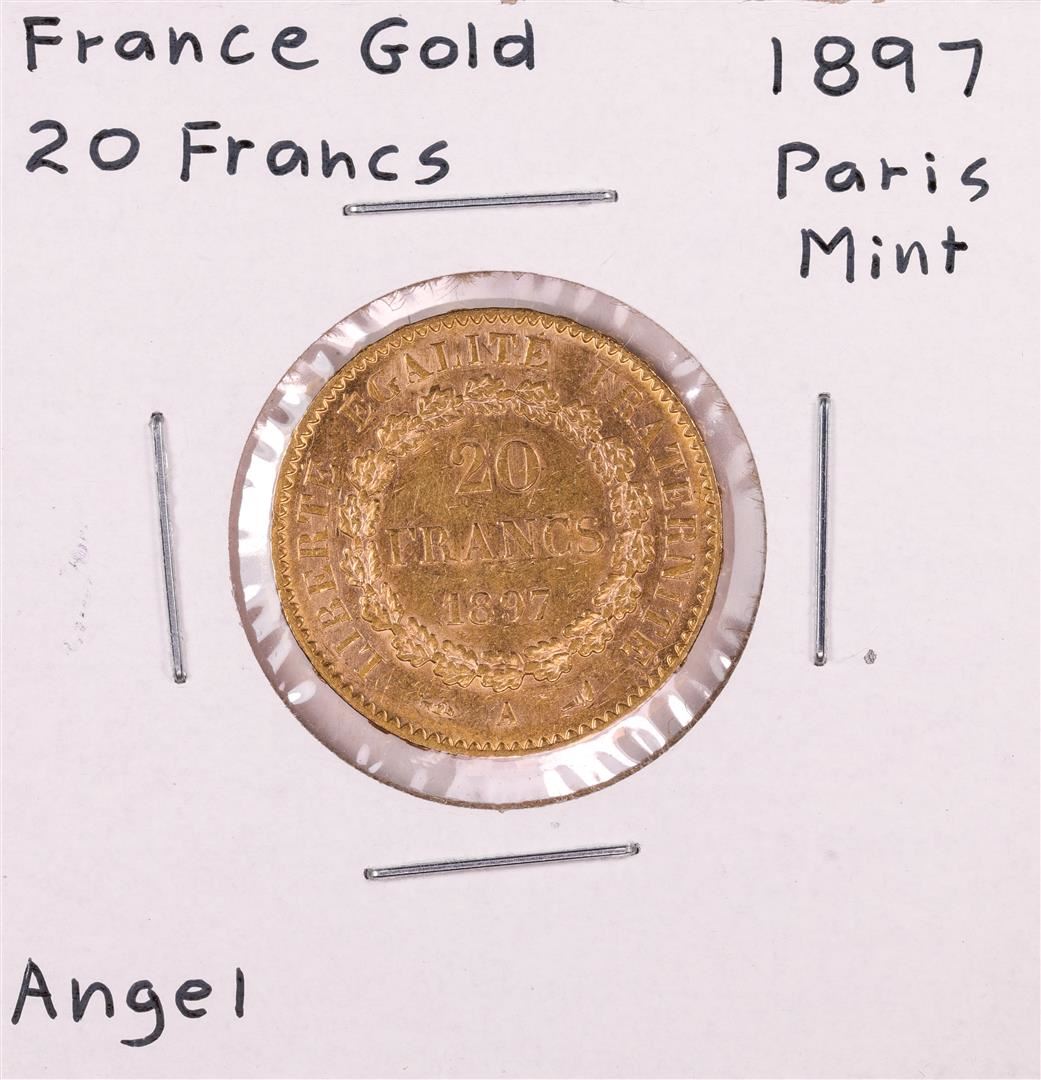 One 1897 Paris Mint France 20 Francs Gold Coin.