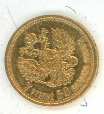 1897 Russian 7 Ruble Gold Coin From Era Nicholas II