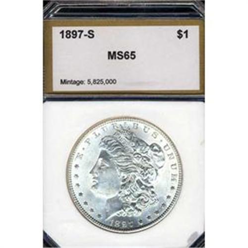 Well advanced in this grade level and close to PCI’s estimation of MS65. When it is recalled that of the 5,825,000 1897-S dollars minted, the majority went to the melting pots early in the 20th century, collectors have to vie with one another to acquire a nice original specimen like the coin offered here.