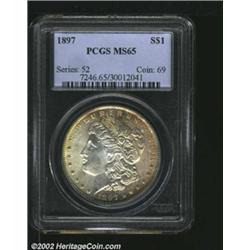 1897 S$1 MS65 PCGS. The obverse has rich golden-brown color, while the reverse has sea-green, rose-v